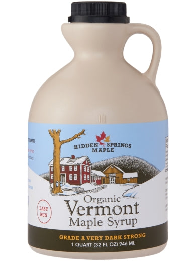 Our end-of-season sap runs produce the darkest and strongest flavor syrup available on the market. Vermont is known for high quality late season syrup, formerly called Vermont Grade B. Our Last Run is even darker and stronger than the old Grade B. The maple flavor is truly off the chart. Available in limited quantities, in one quart (32 oz) size only. Kosher, Organic and Non-GMO certified.