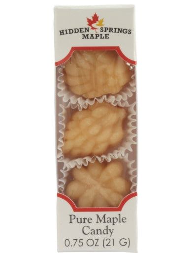 Three bite-sized pieces of our creamy maple candy made from 100% pure maple syrup. Weight: 0.75 ounce.